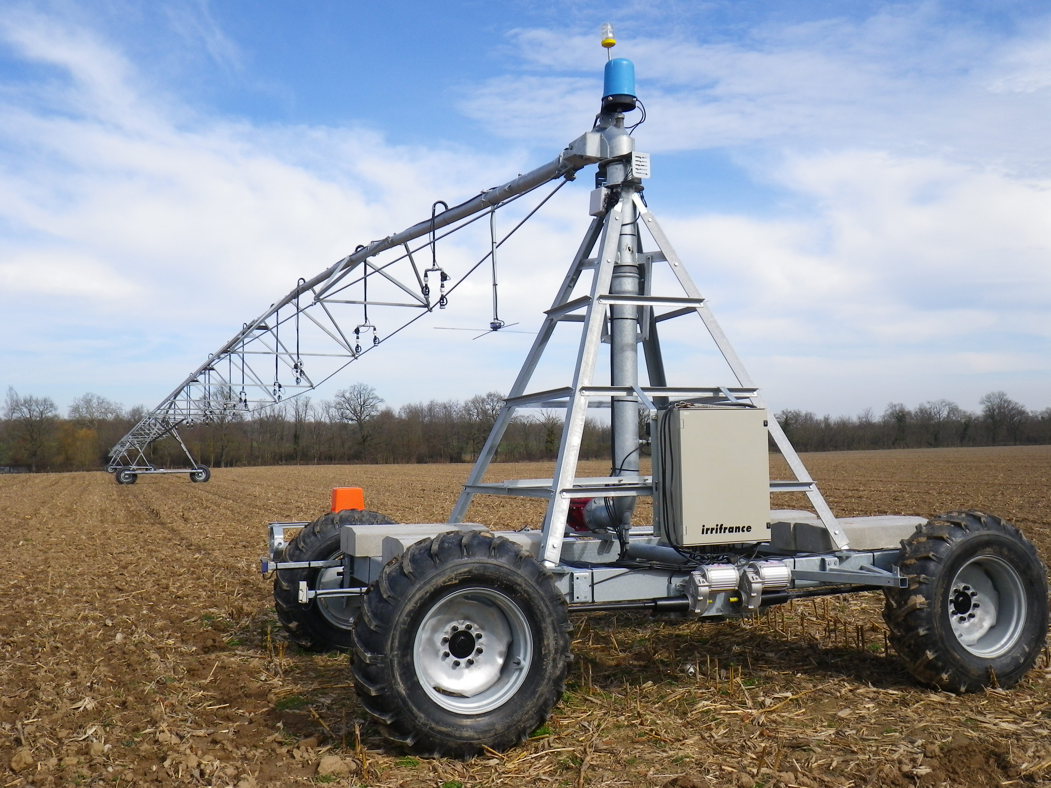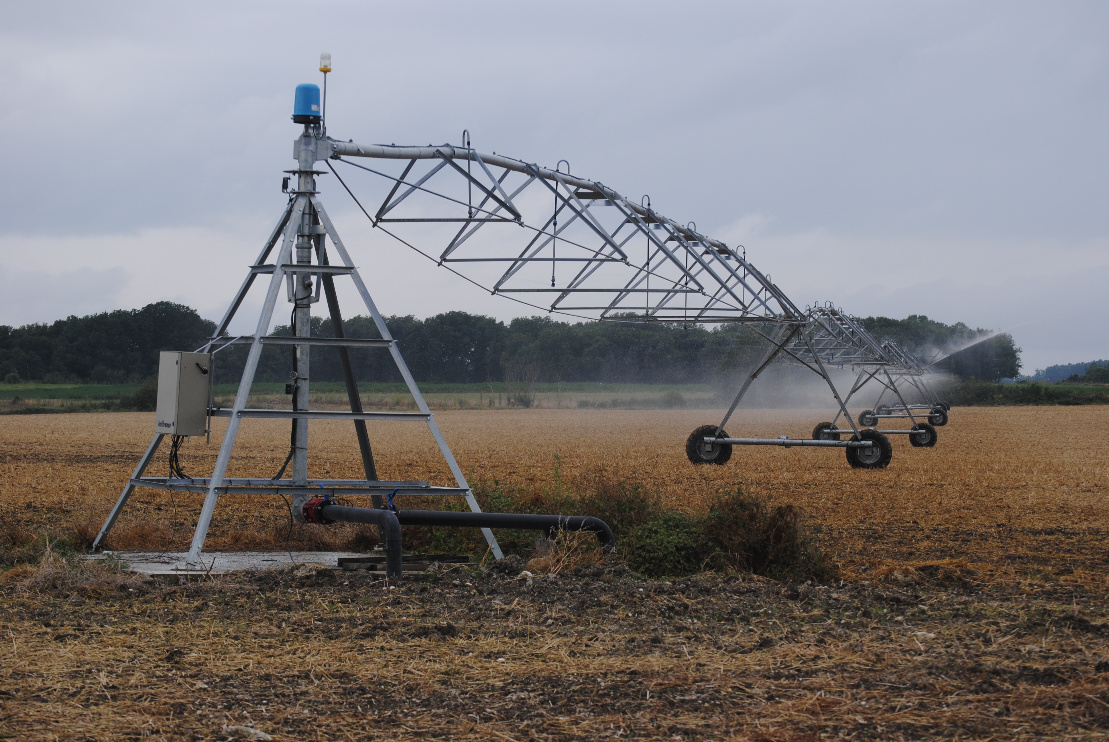 - Appareils d’arrosage, ayant une structure métallique, composés d’une ou plusieurs travées, munis d’asperseurs, fonctionnant avec une pression moyenne et entièrement automatique.